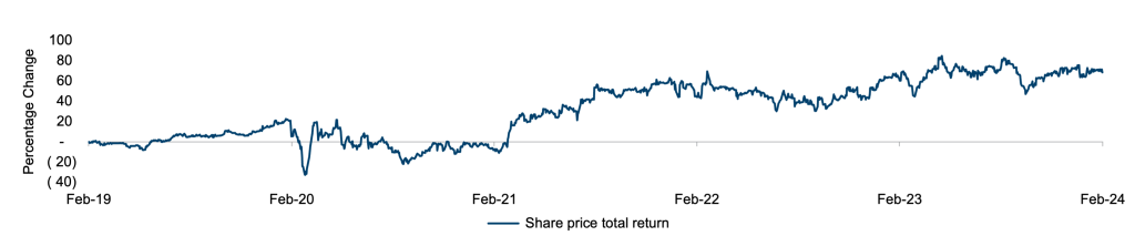 Share price | -15.90 | -15.90 | 7.35 | 24.99 | 65.05 |